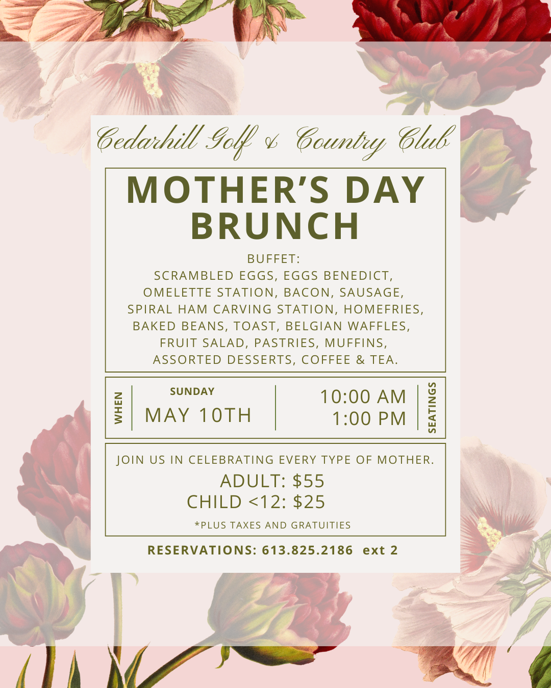 We are now closed for the season. The clubhouse will reopen for regular hours in the spring. For any winter event inquiries please e-mail david@cedarhillgolf.com